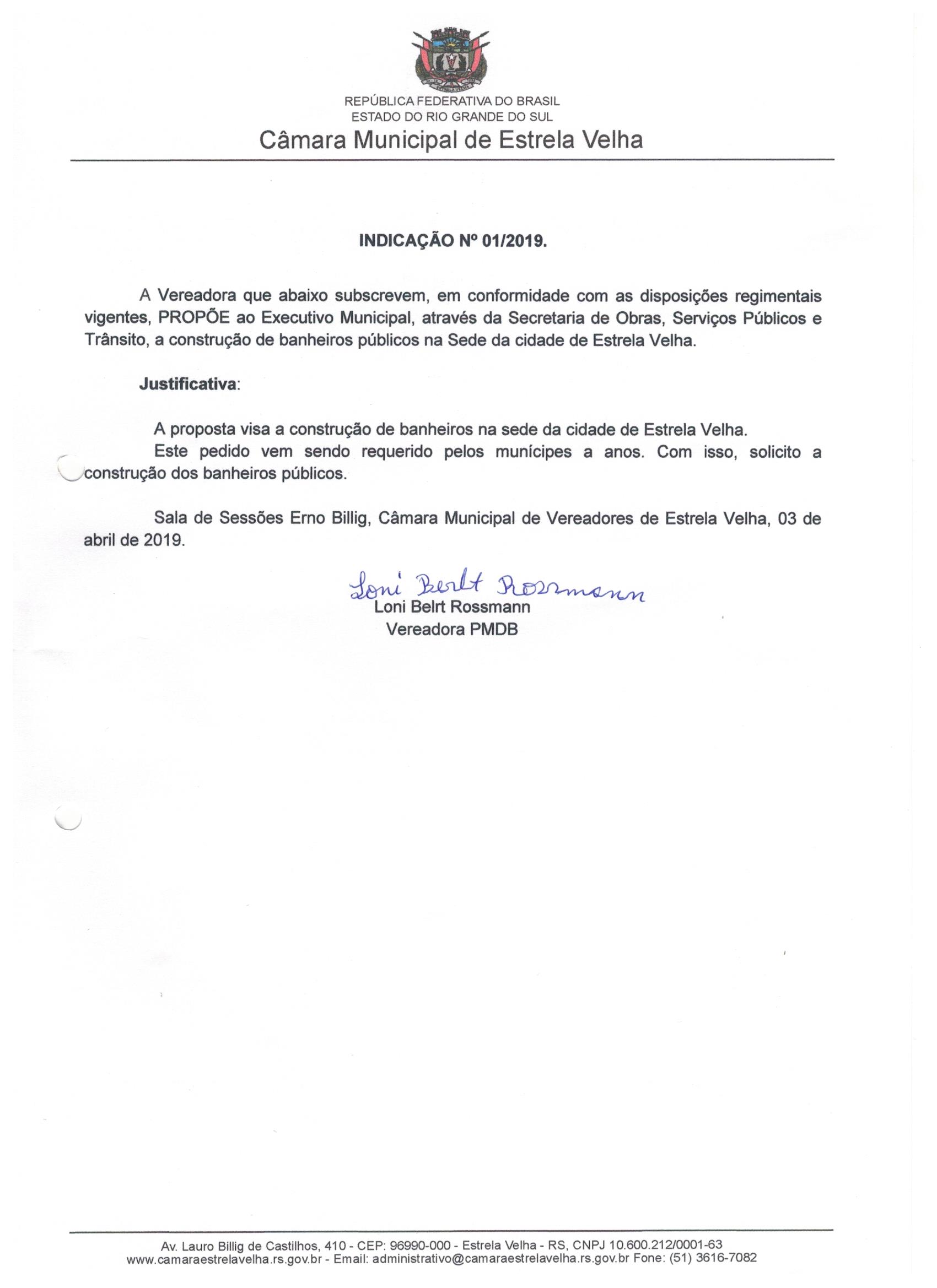 Indicação nº 1 de 2019