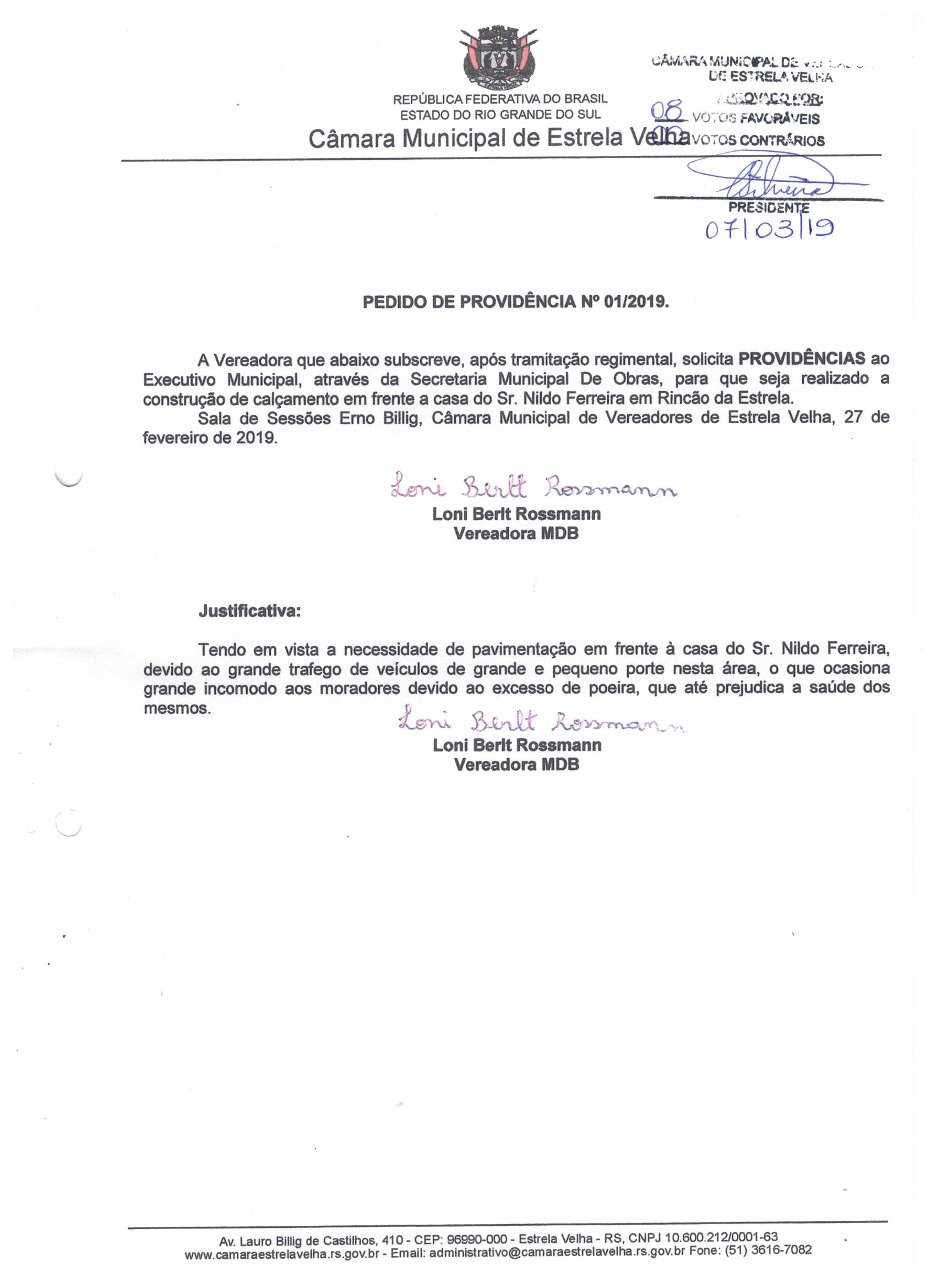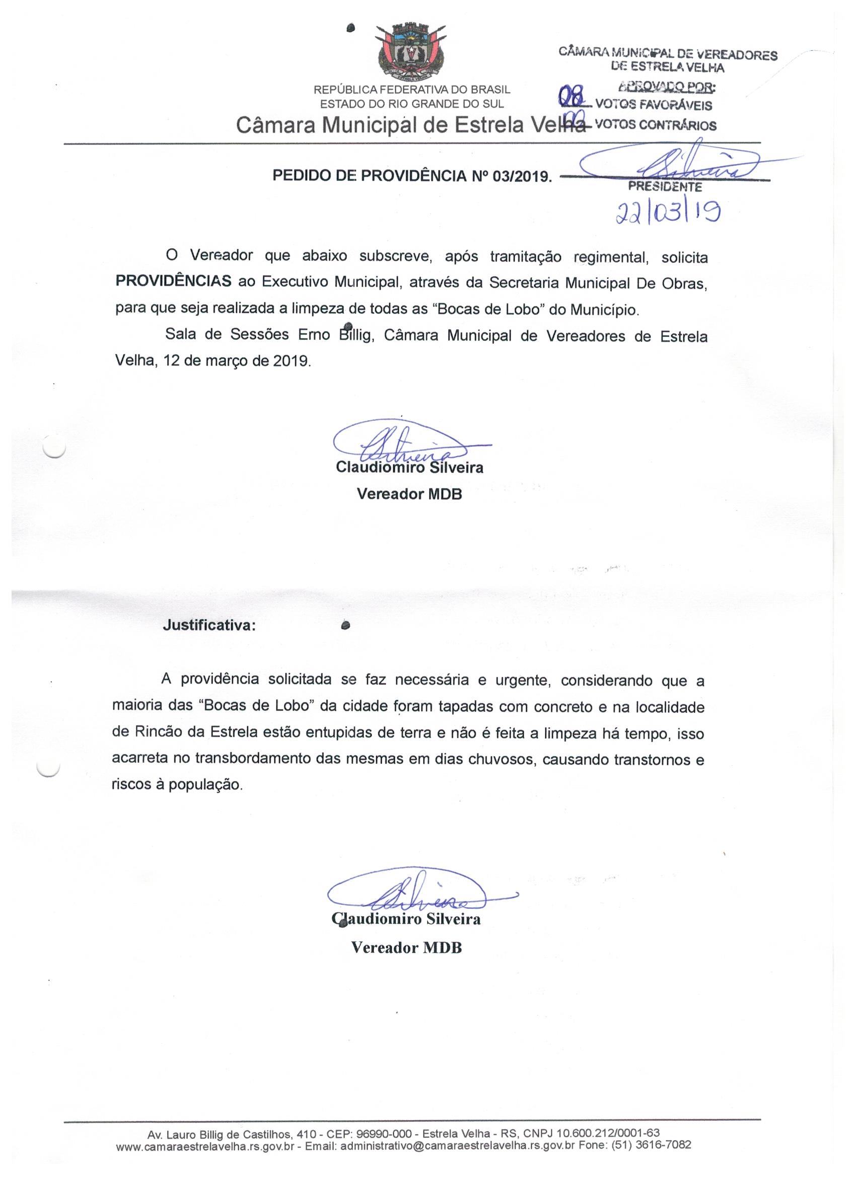 Pedido de Providência nº 03/2019