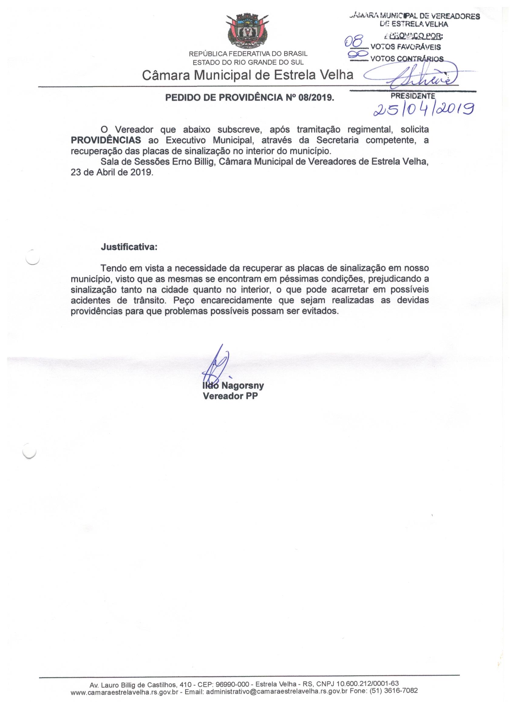 Pedido de Providência nº 8 de 2019
